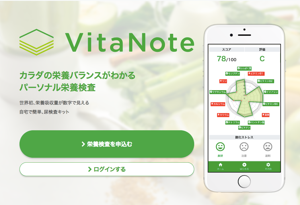 VitaNoteは”尿”から栄養吸収量を測定する事を可能にした世界初のパーソナル栄養測定キットです!
