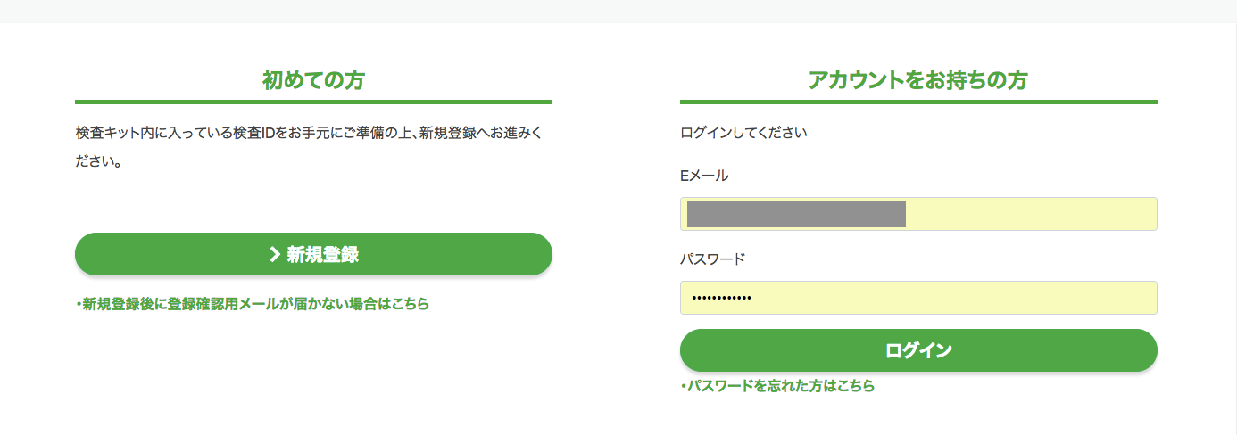 マイページにログインすると、最初に検査結果一覧が表示されます。(グレーのところに個別のIDが記載されています)