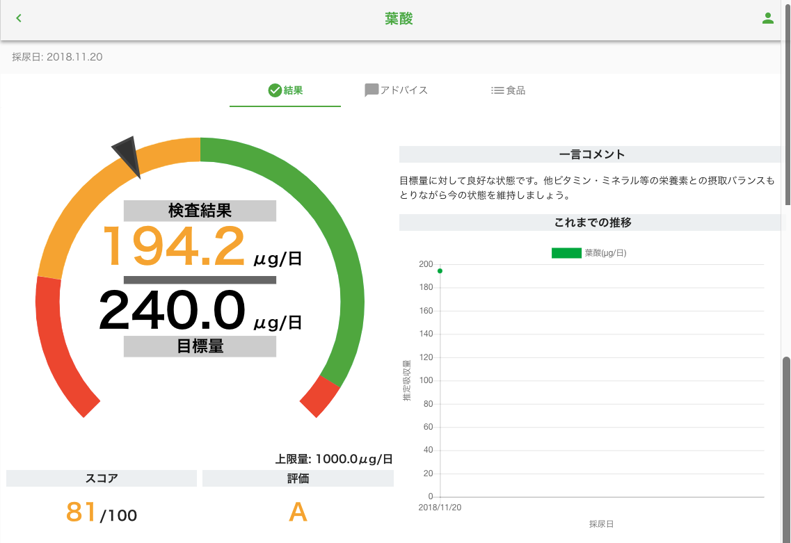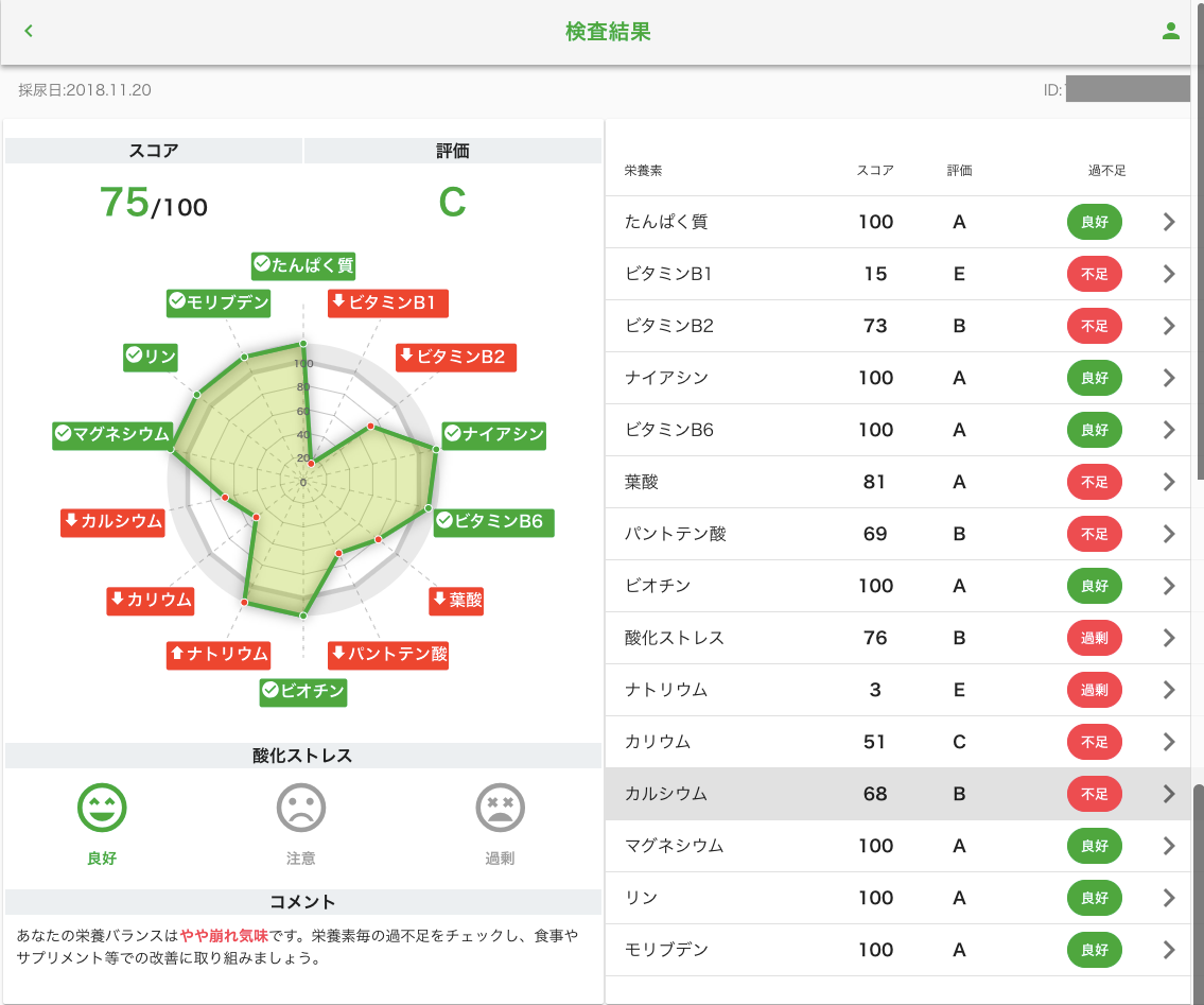 ・・・とすごそうな事がHPにかいてありますが、簡単にいうと尿検査で栄養素の過不足がパソコンやスマホで簡単に確認出来るサービスです。